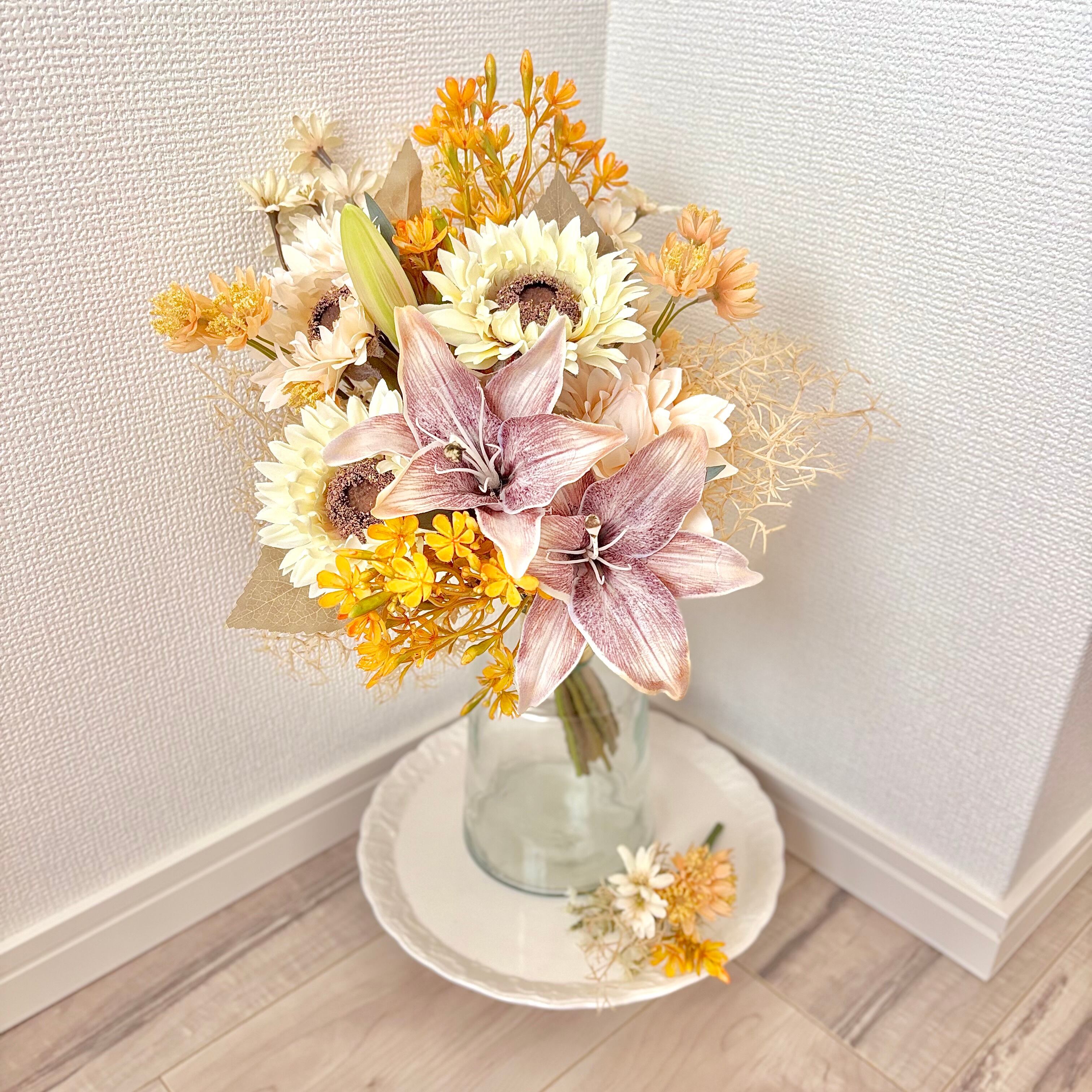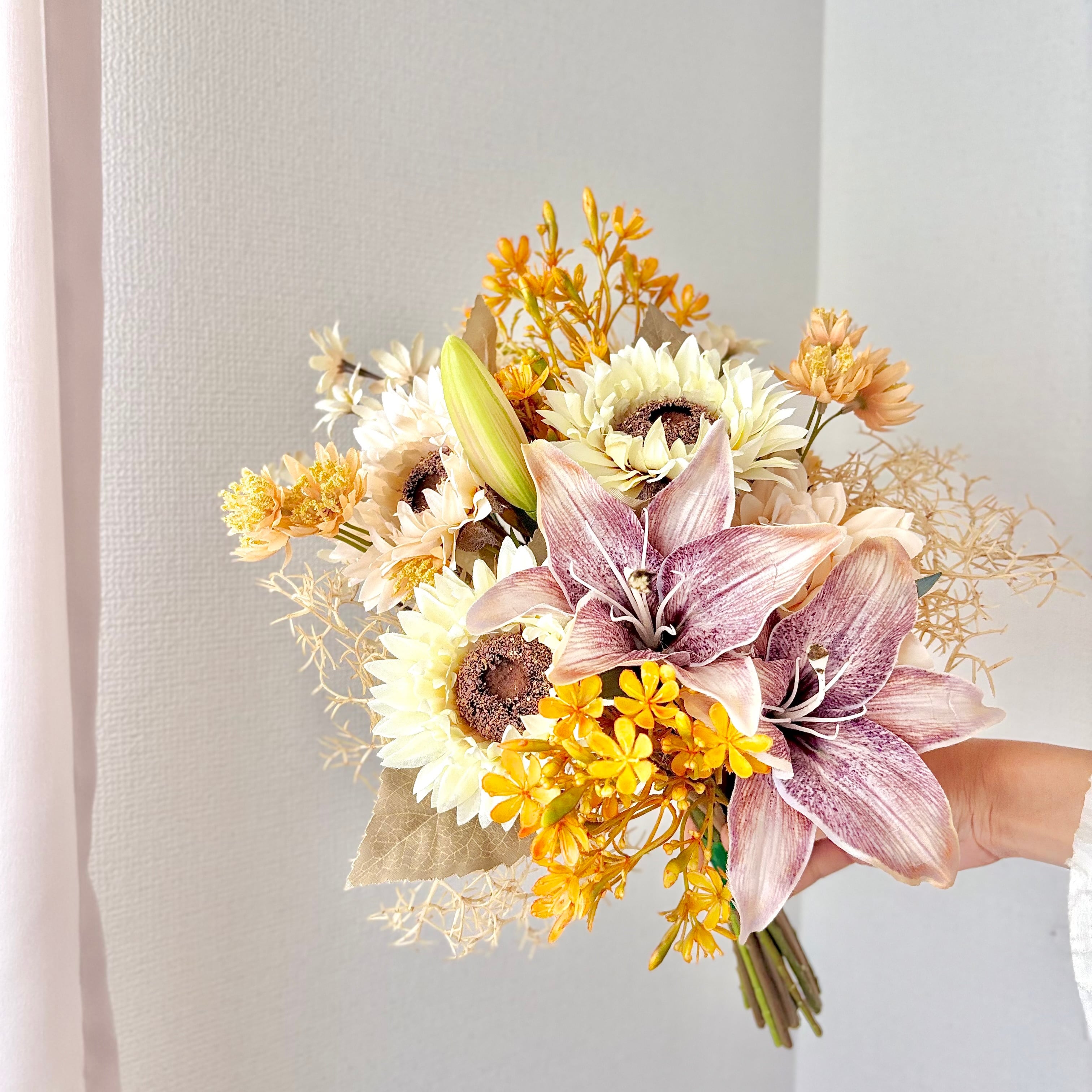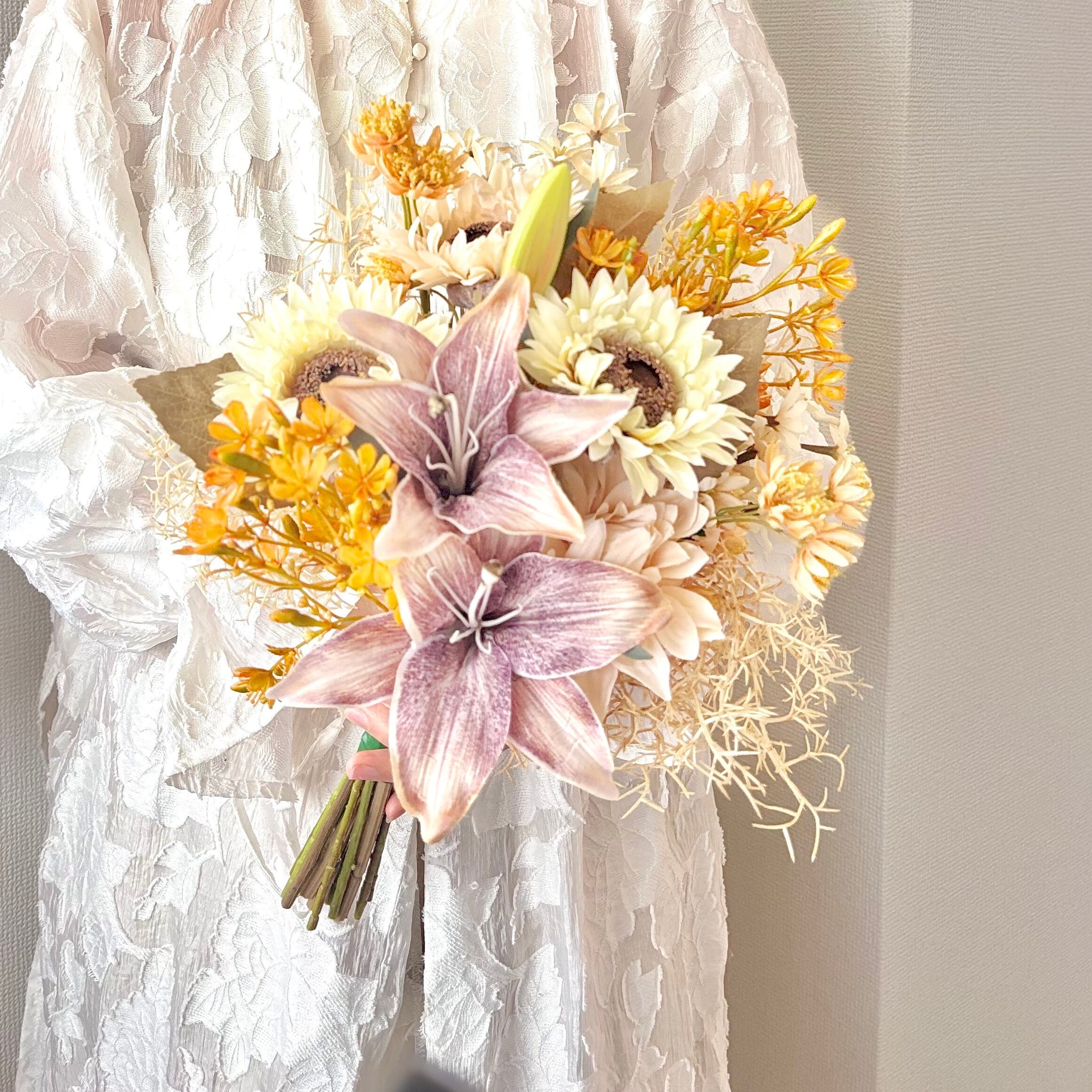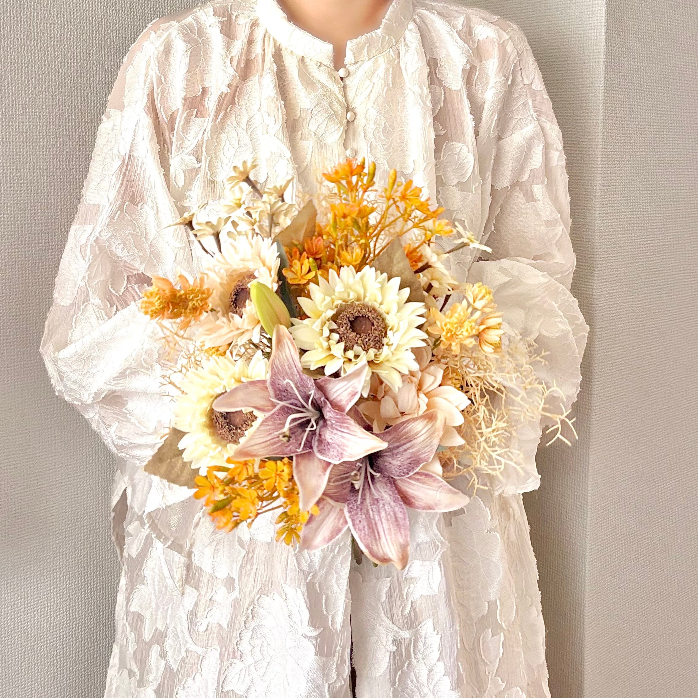 ゴッホのひまわりを使用した造花ブーケ♪ウェディングブーケ 造花 ブーケ フォトウェディング 前撮り 持ち込み