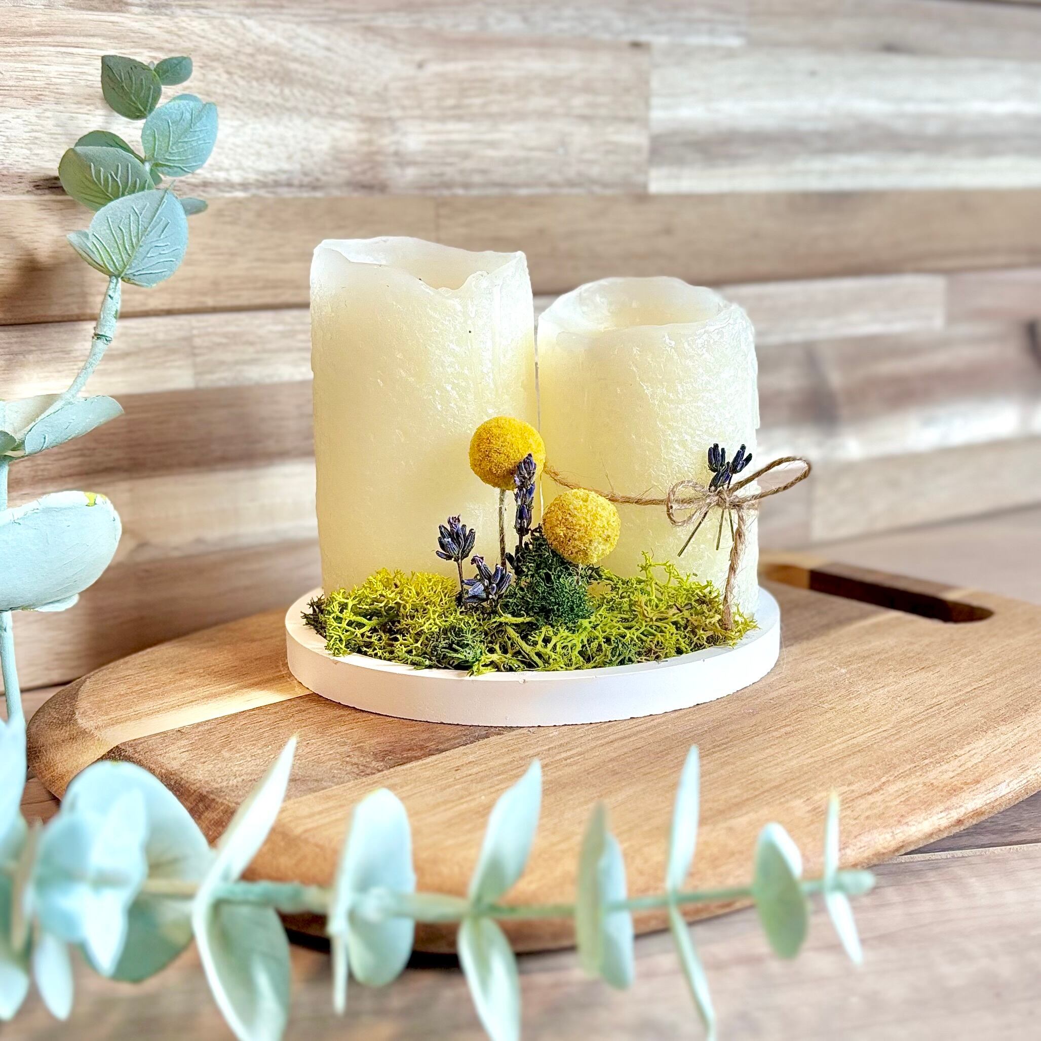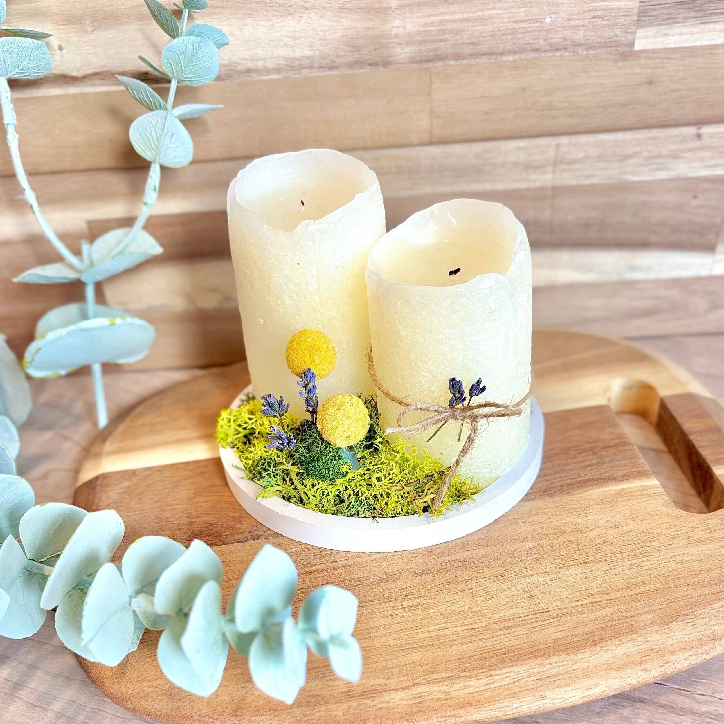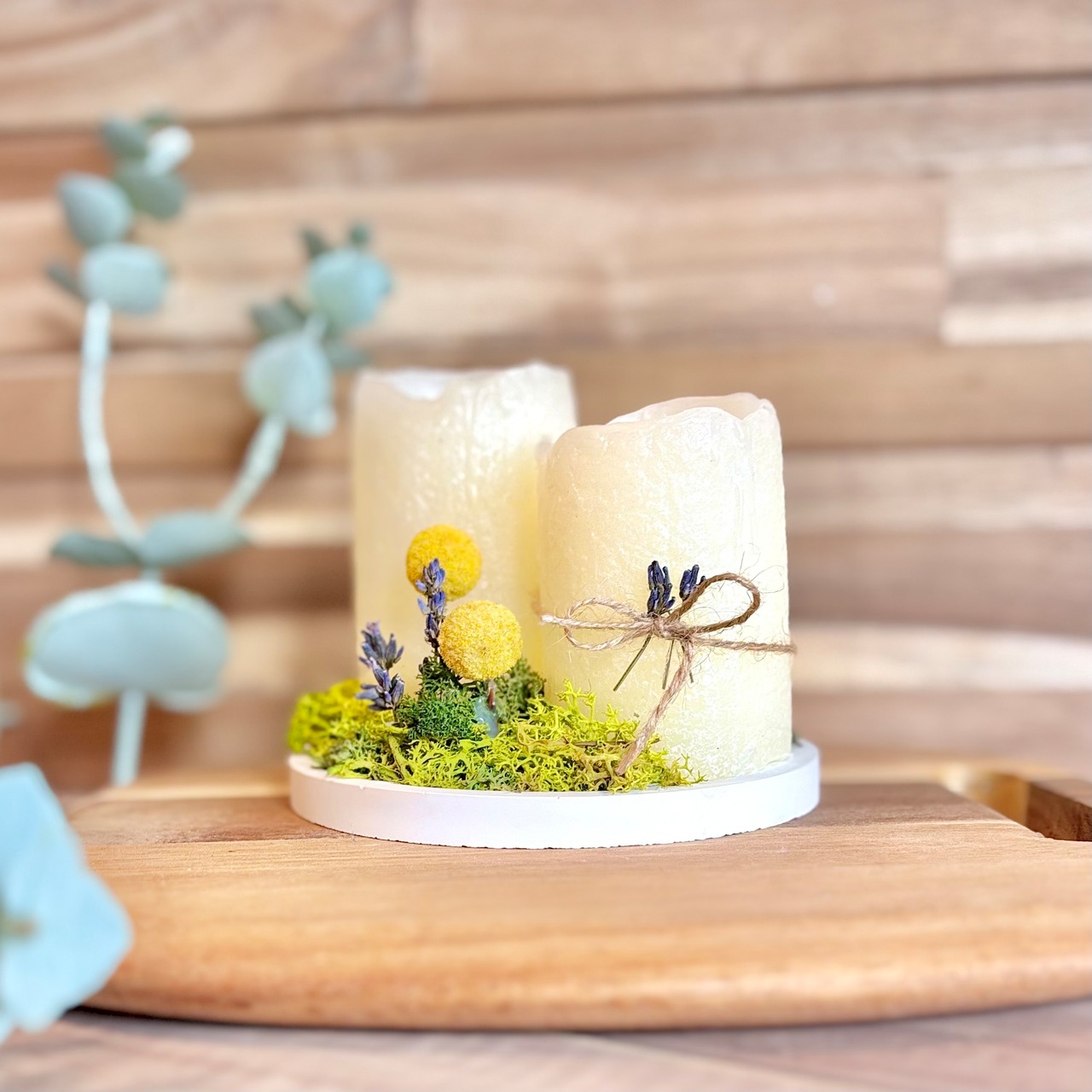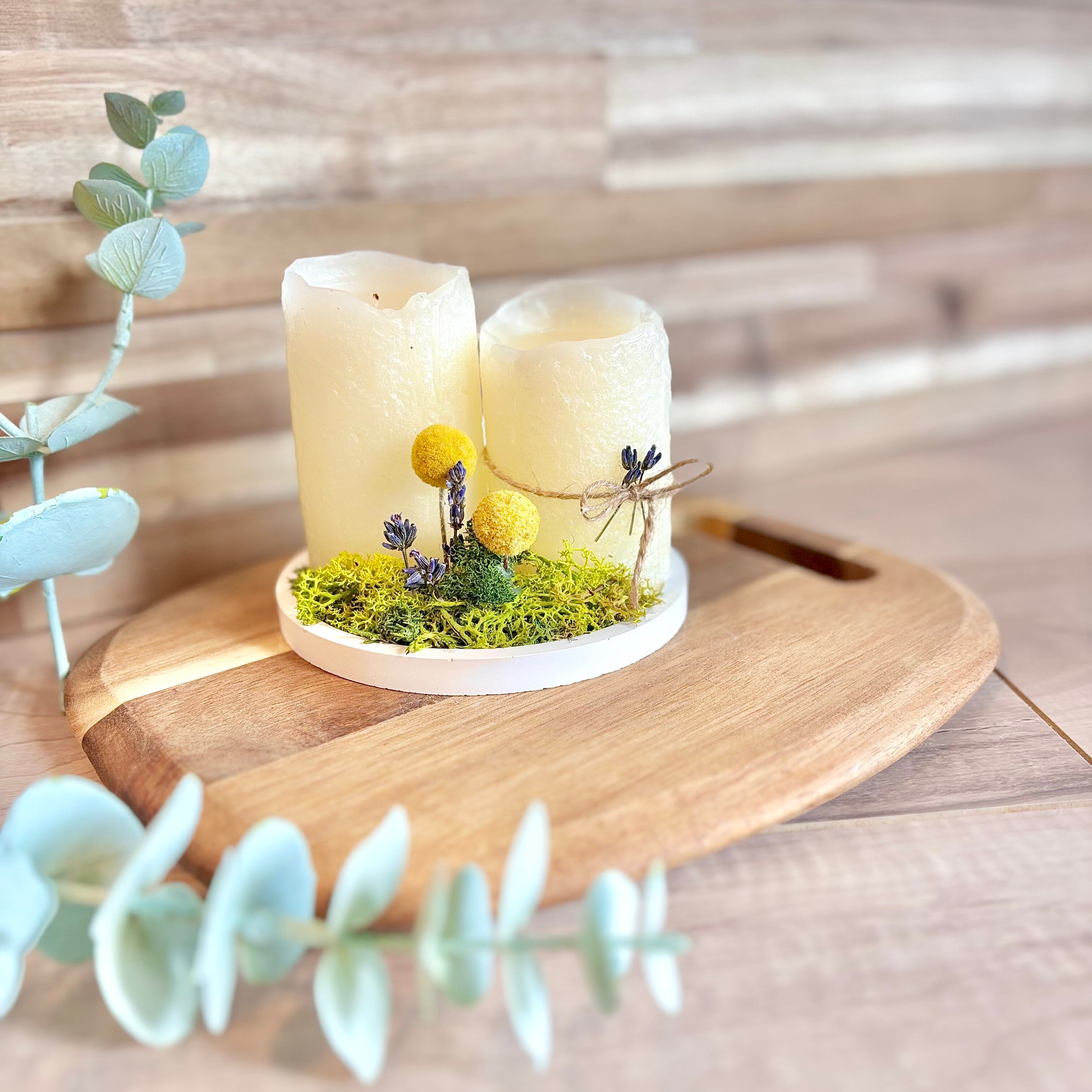 ナチュラルなモスとドライフラワー(ラベンダー、クラスペディアなど)