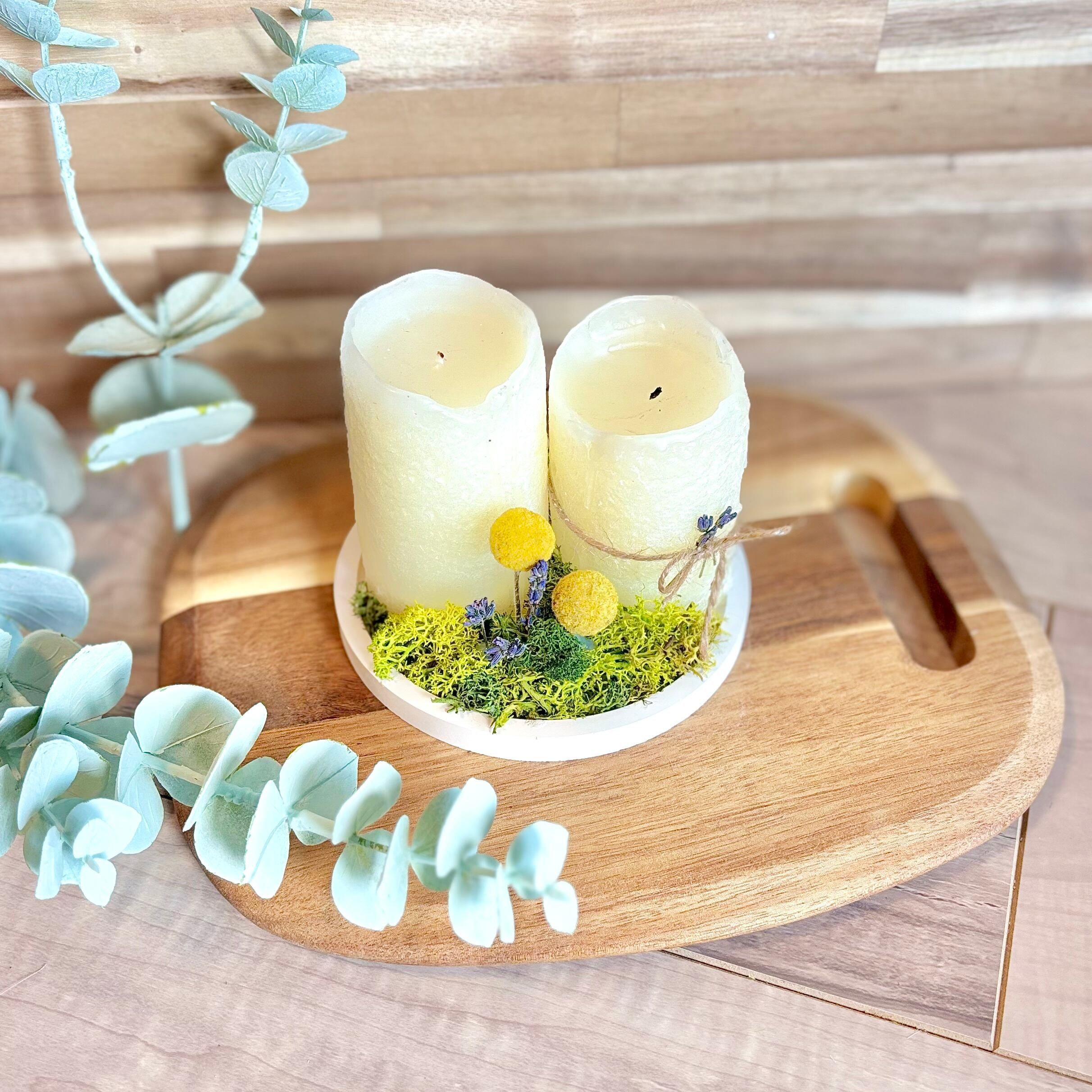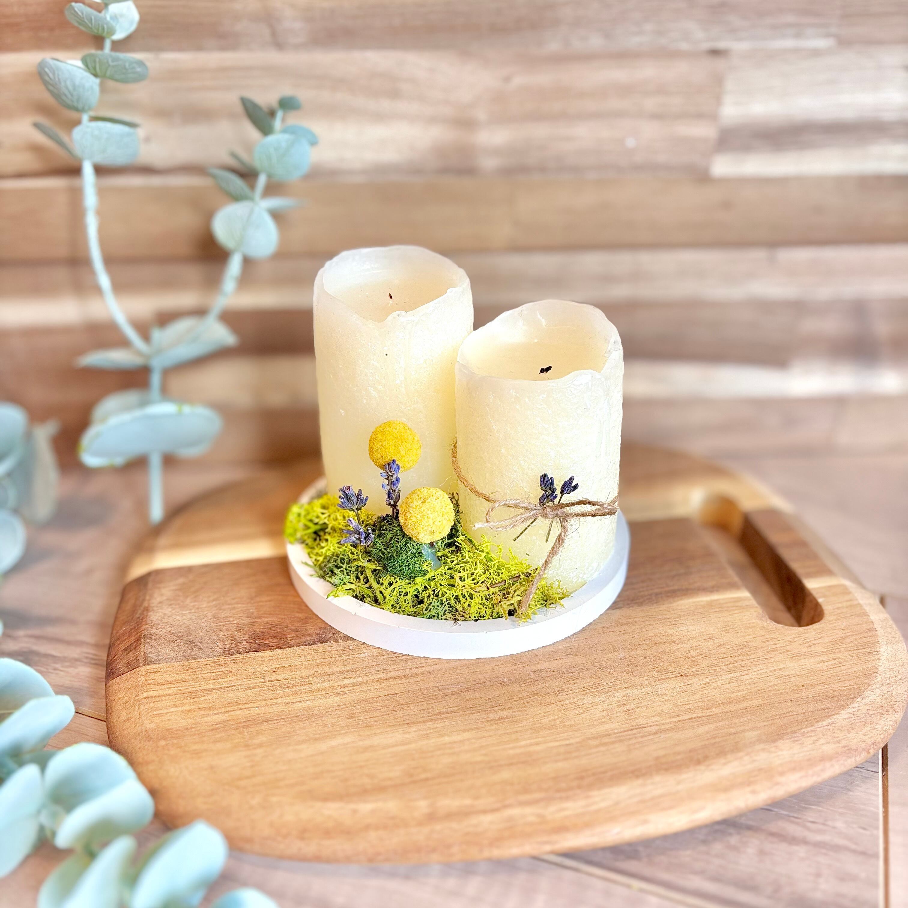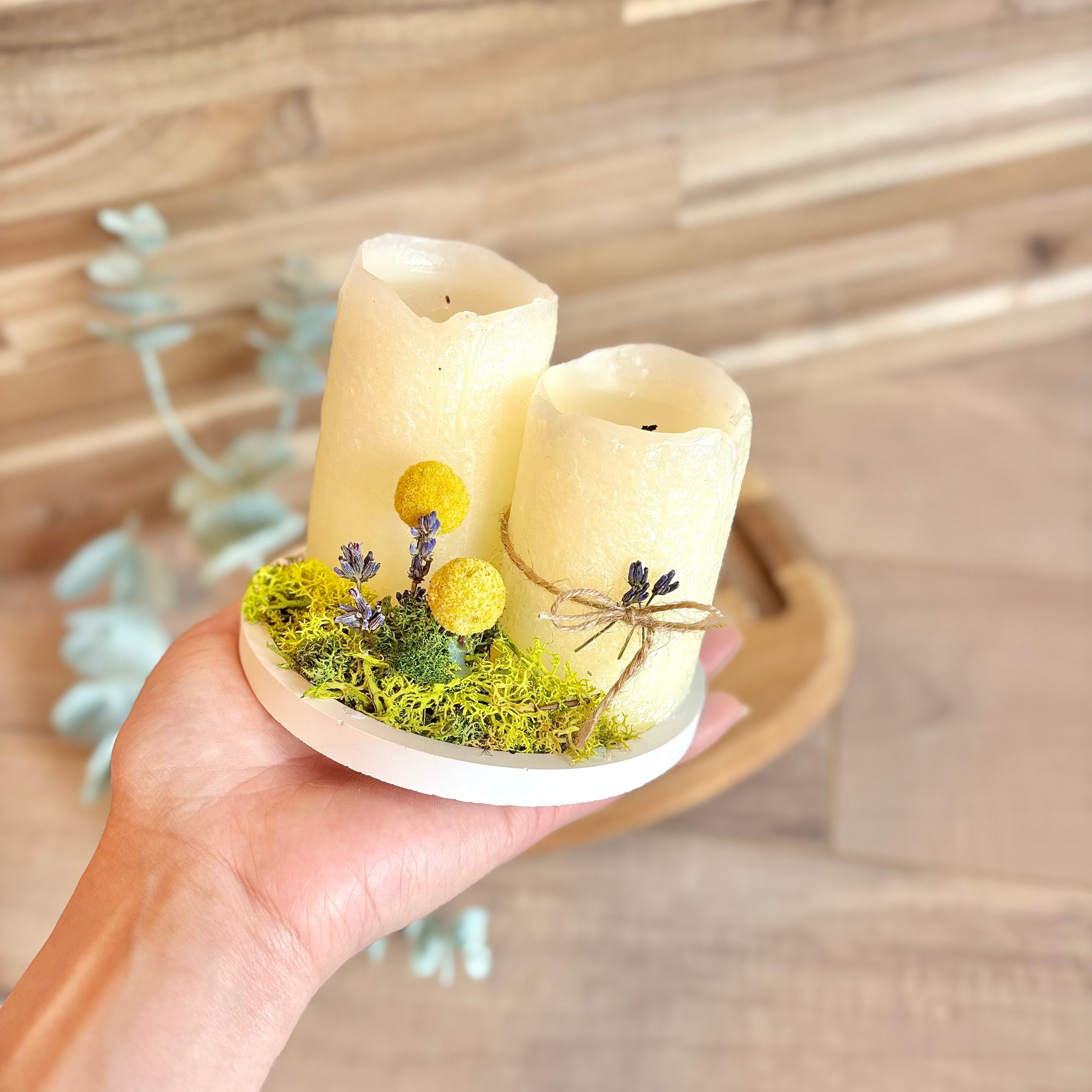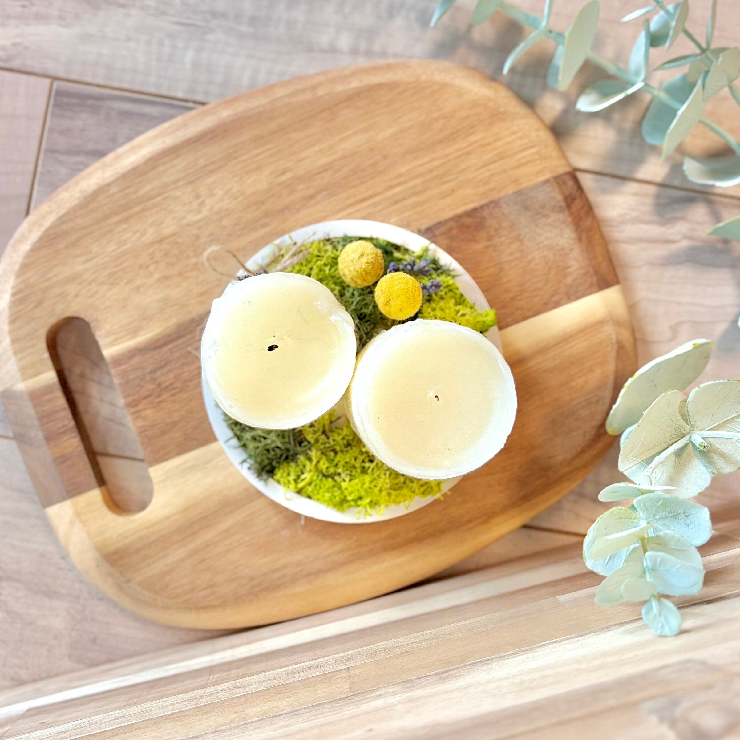 ナチュラルなモスとドライフラワー(ラベンダー、クラスペディアなど)