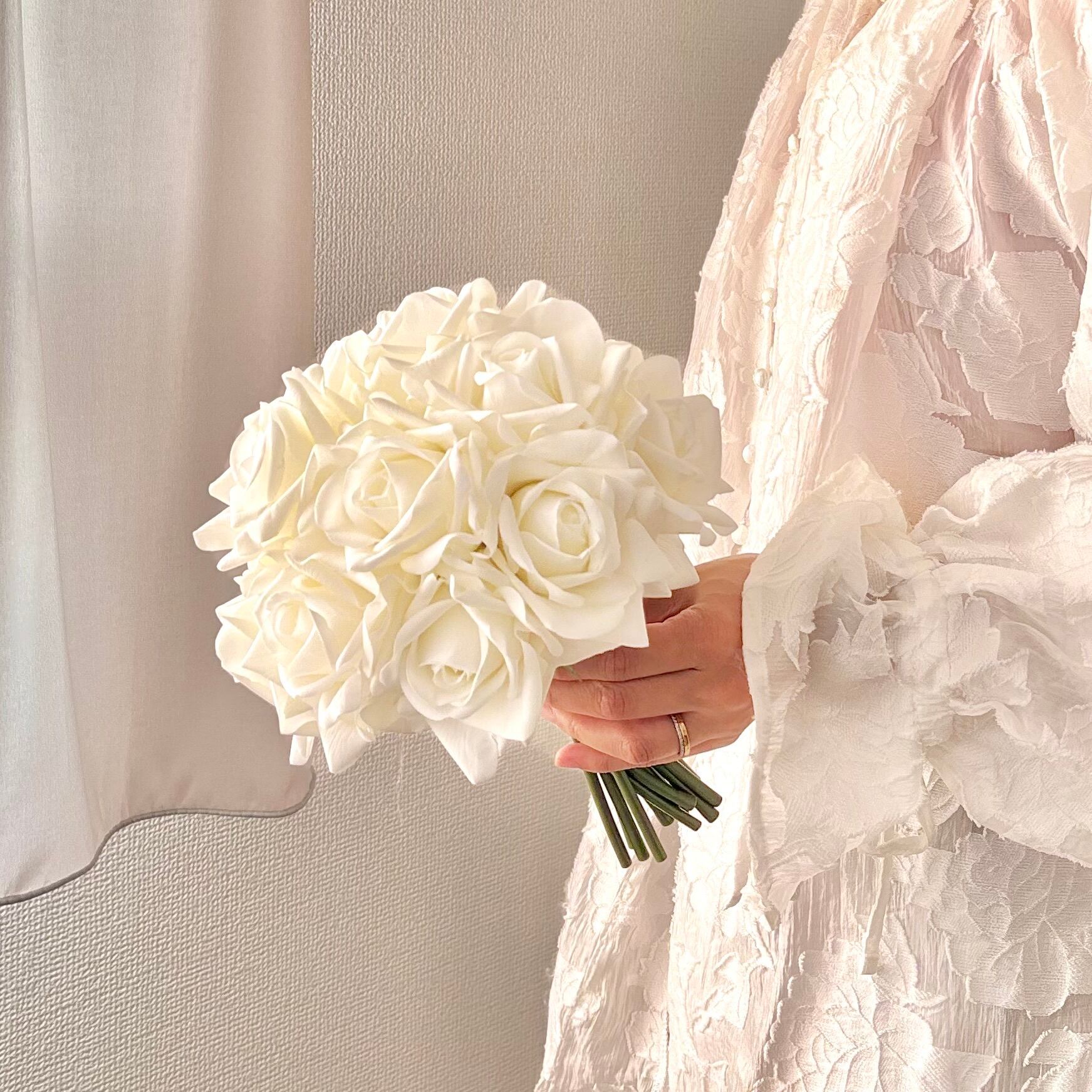 長時間の撮影でも心配のないウェディングブーケでございます。