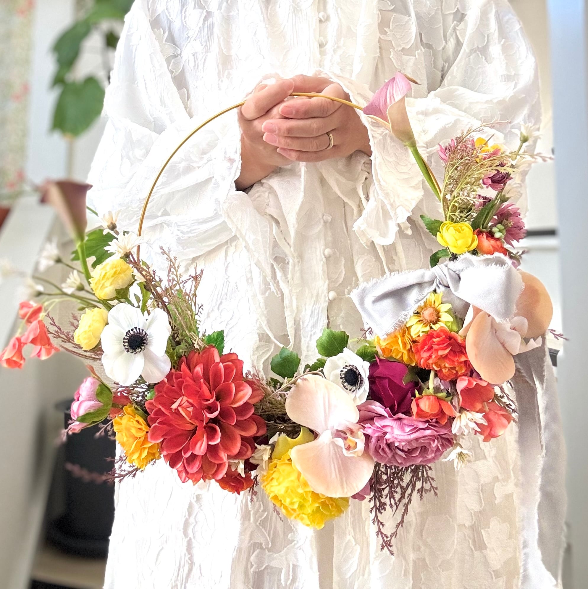 真鍮 リース型ブーケ カラードレス ウェディングドレス
