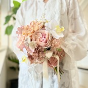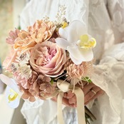 ブーケ/ブートニアにリボンお付けしてお送りいたします。