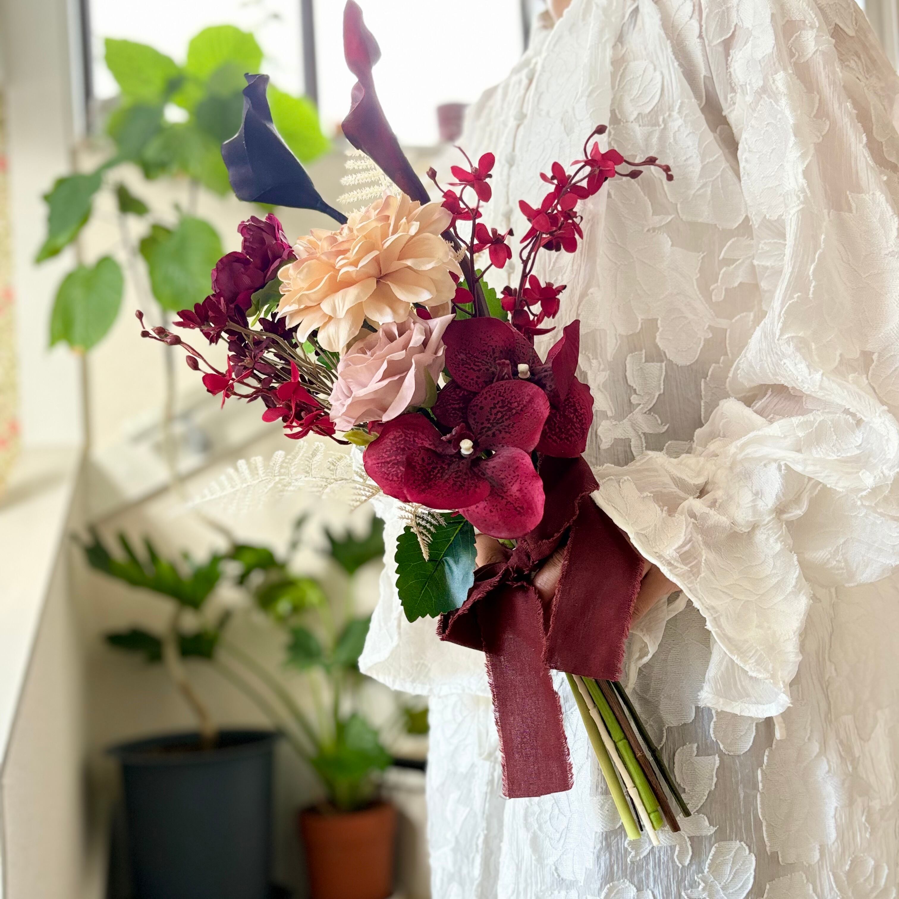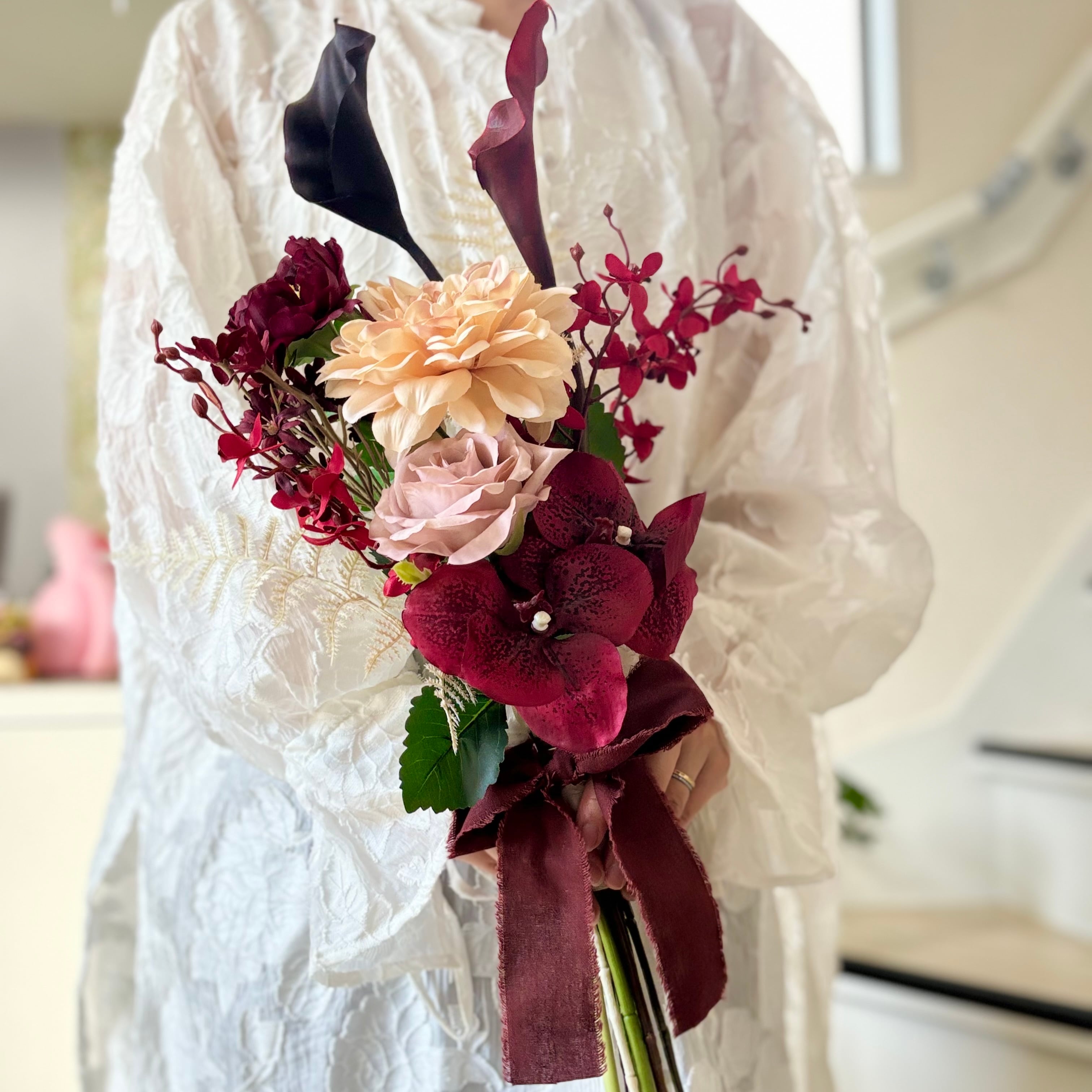ウェディングブーケ カラー/ダリア 大人レッド アームブーケ