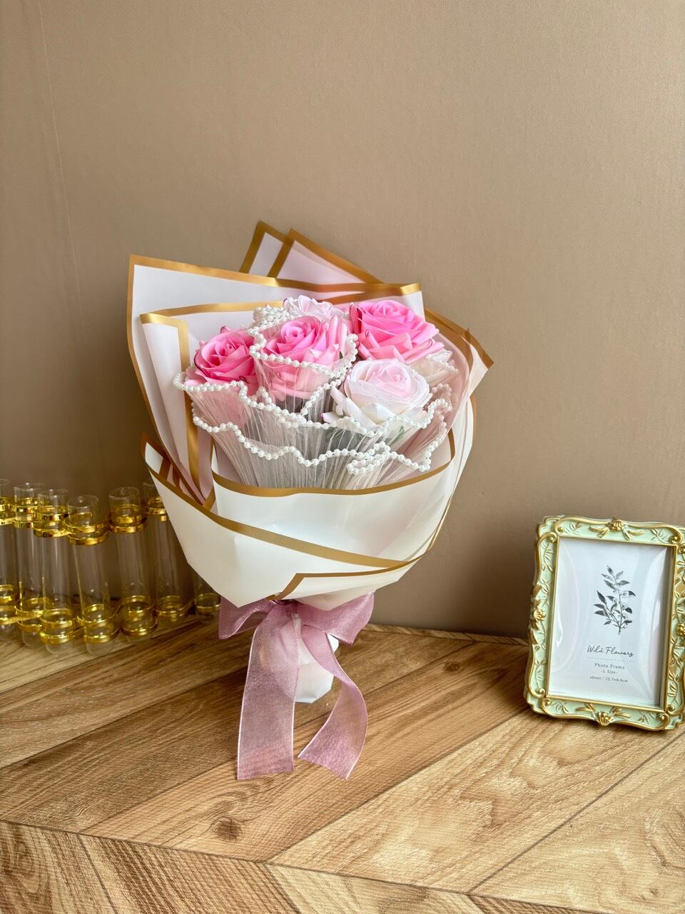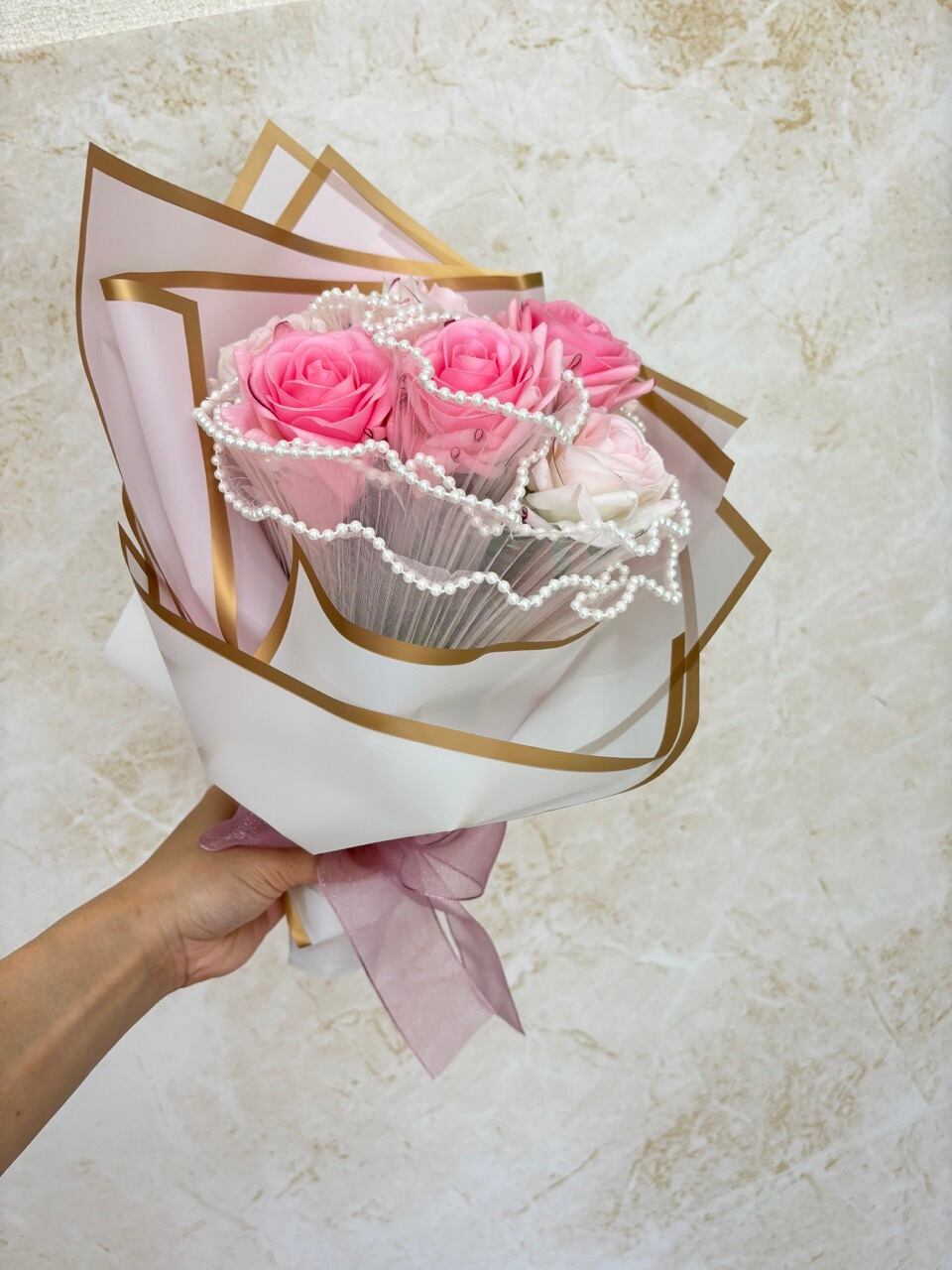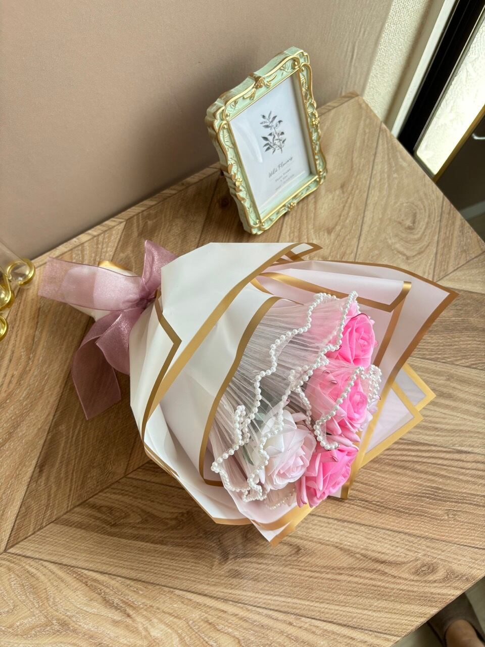 パール付きチュールが可愛らしい韓国風ラッピングの