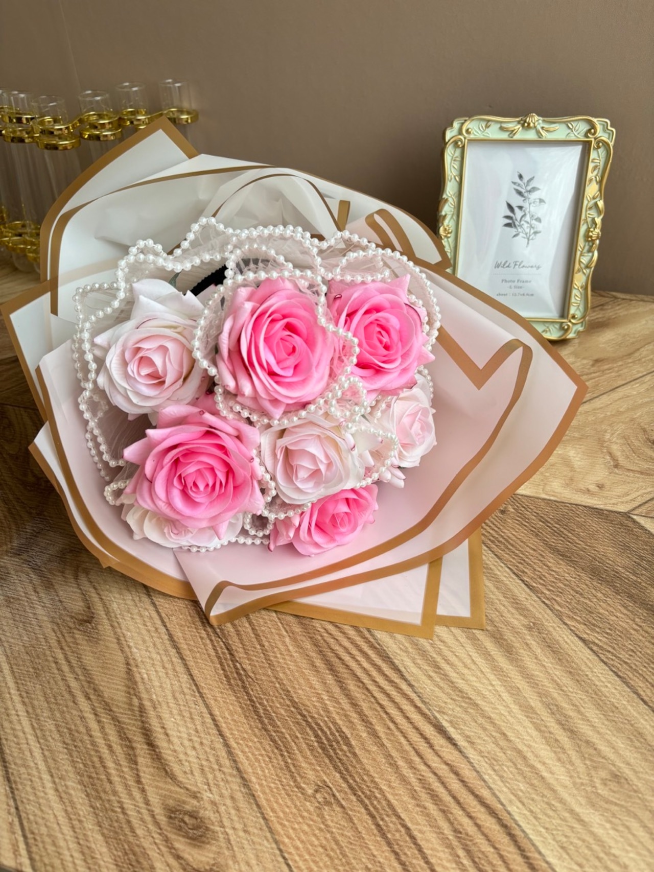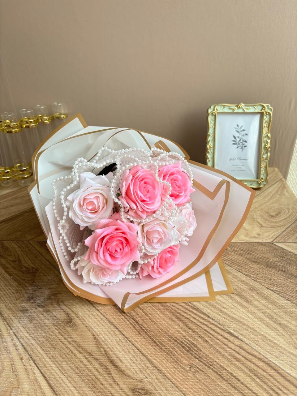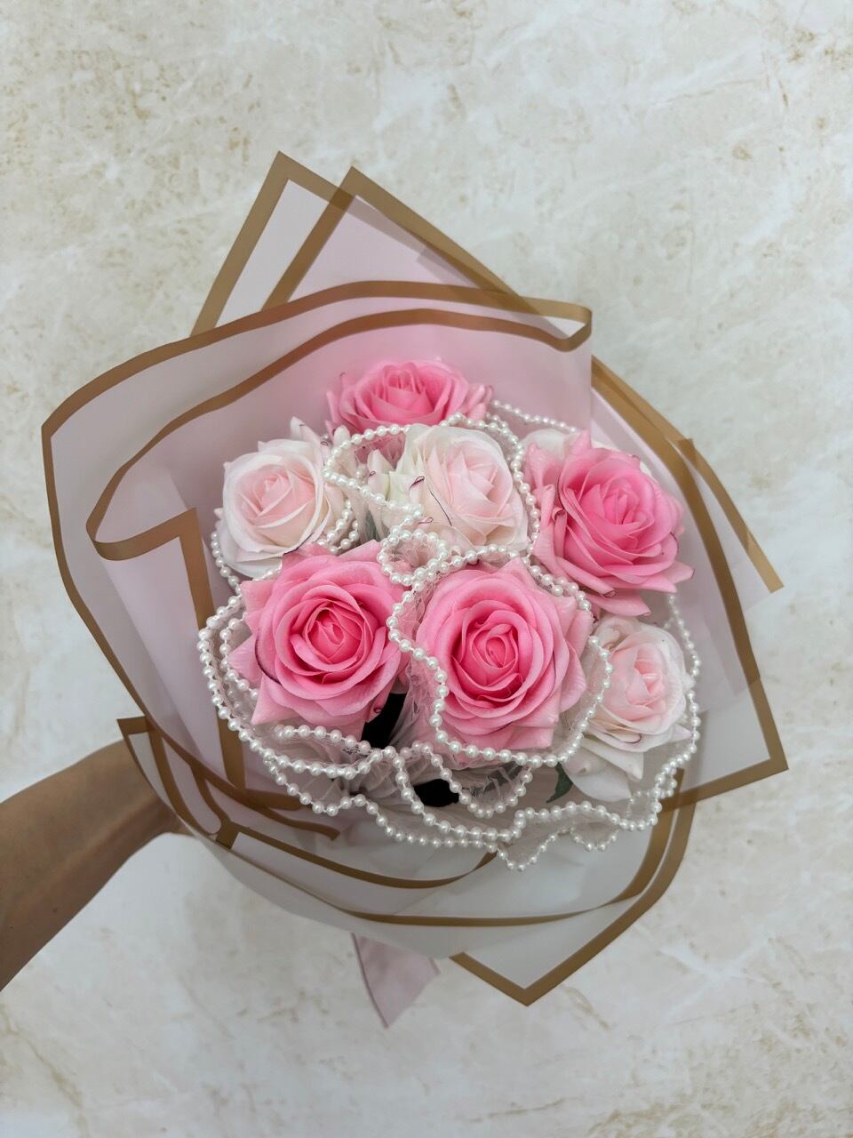パール付きチュールが可愛らしい韓国風ラッピングの