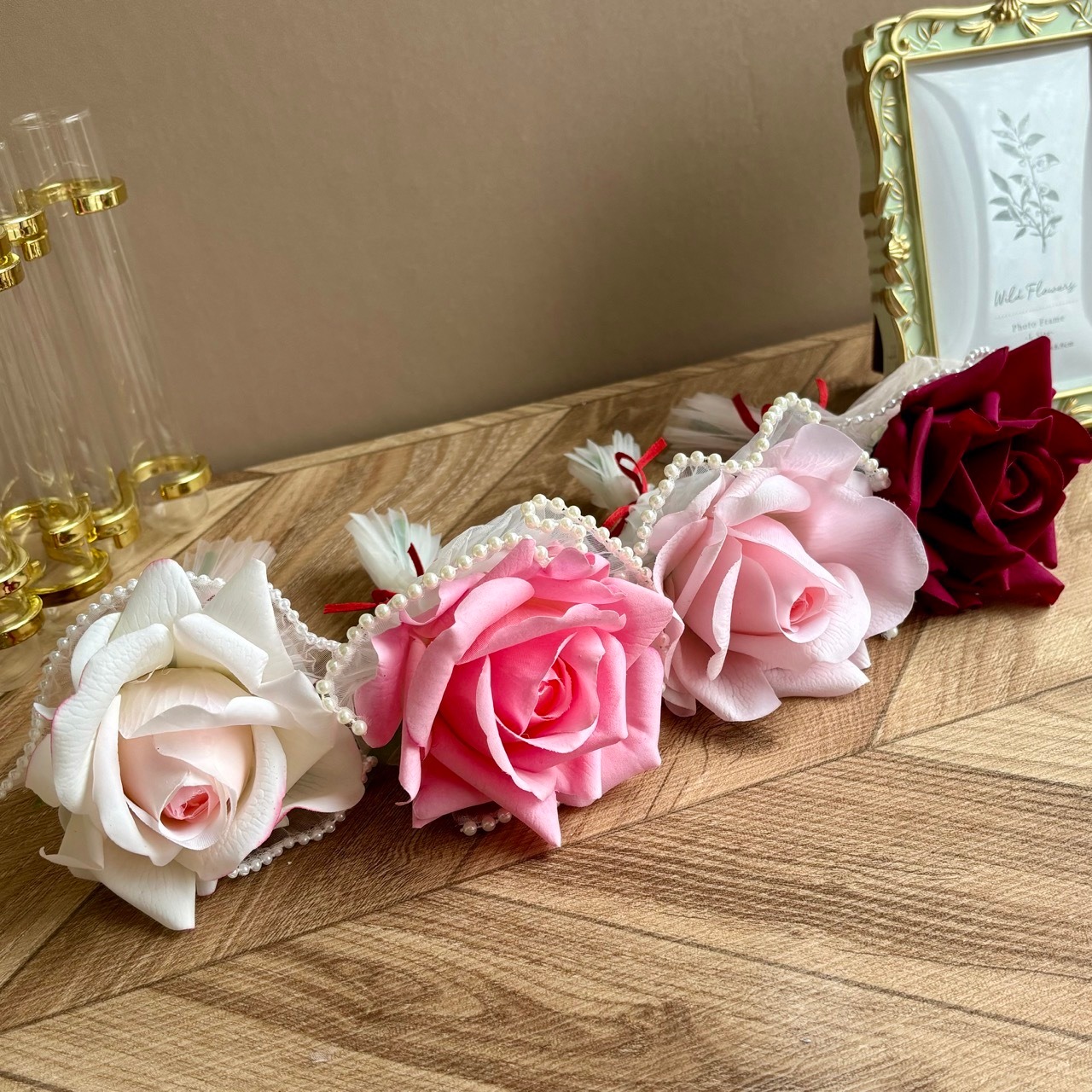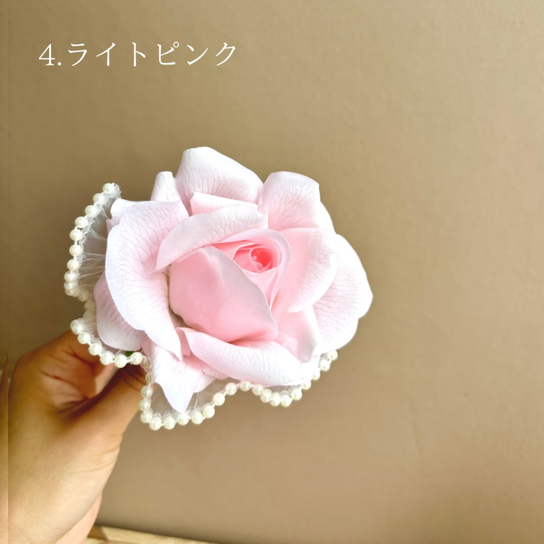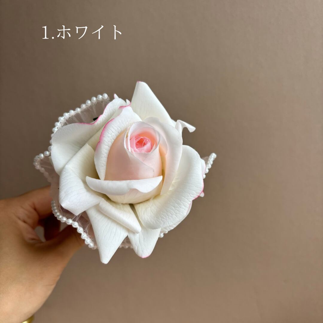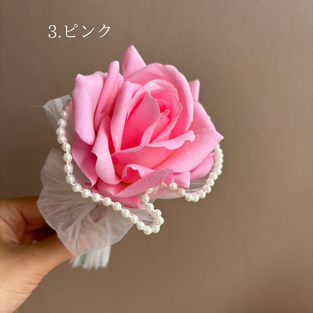 卒業シーズンに♪ 透明バッグ付 ユンヌローズ【Sweet】4色展開 ピンクバラ/白バラ パール チュールラッピング 韓国風花束 バラ1本 | FloweRimi 造花ウェディングブーケ/リーズナブルで可愛いブーケ
