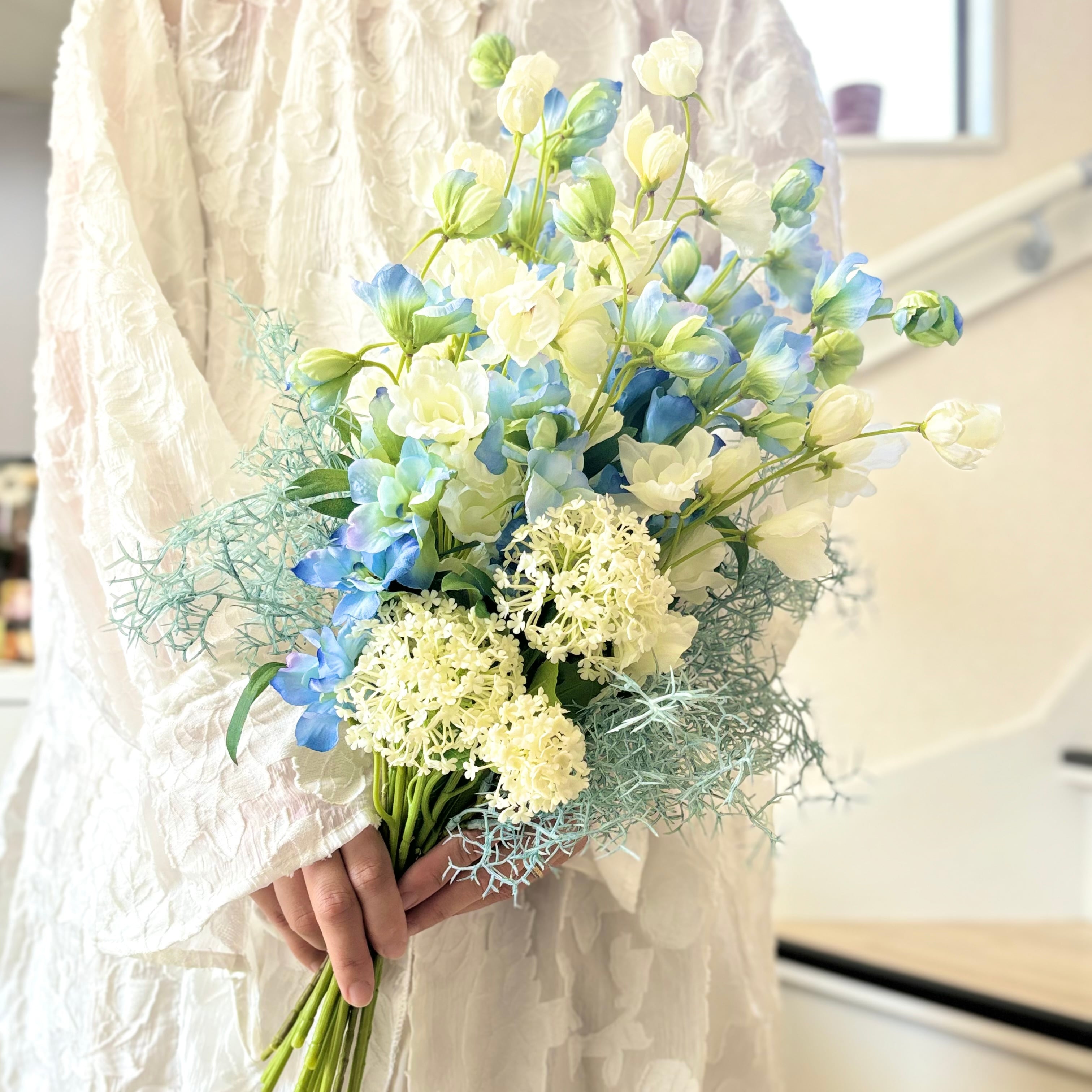 デルフィニウムの爽やかクラッチブーケ ウェディングブーケ 造花 ブーケ フォトウェディング 前撮り 持ち込み