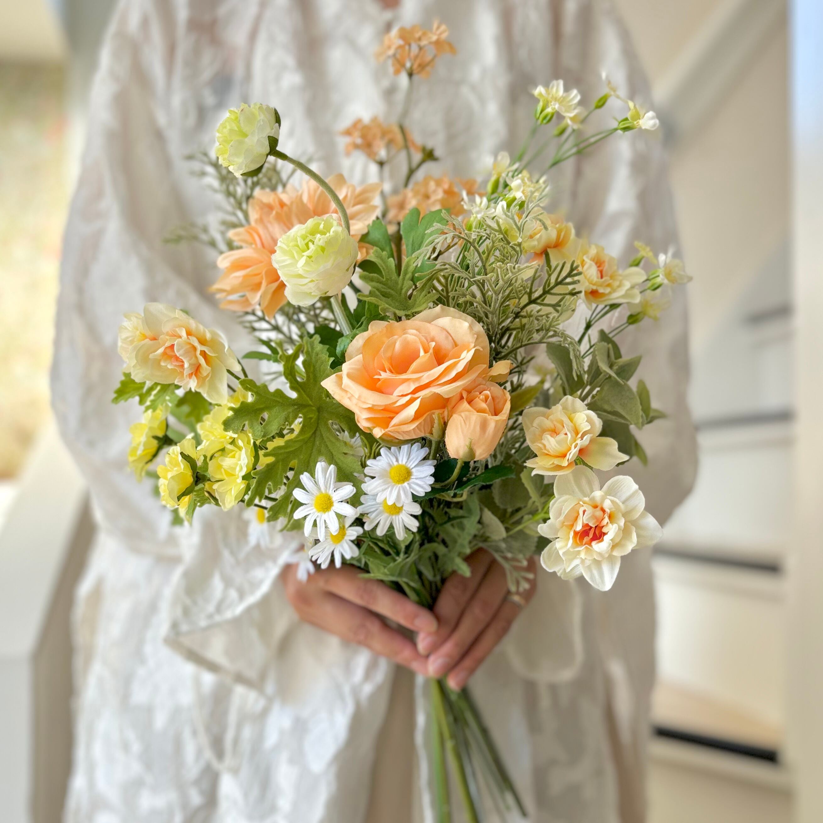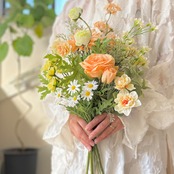 小花がたくさん♪ナチュラルオレンジのブーケ ウェディングブーケ 造花 ブーケ