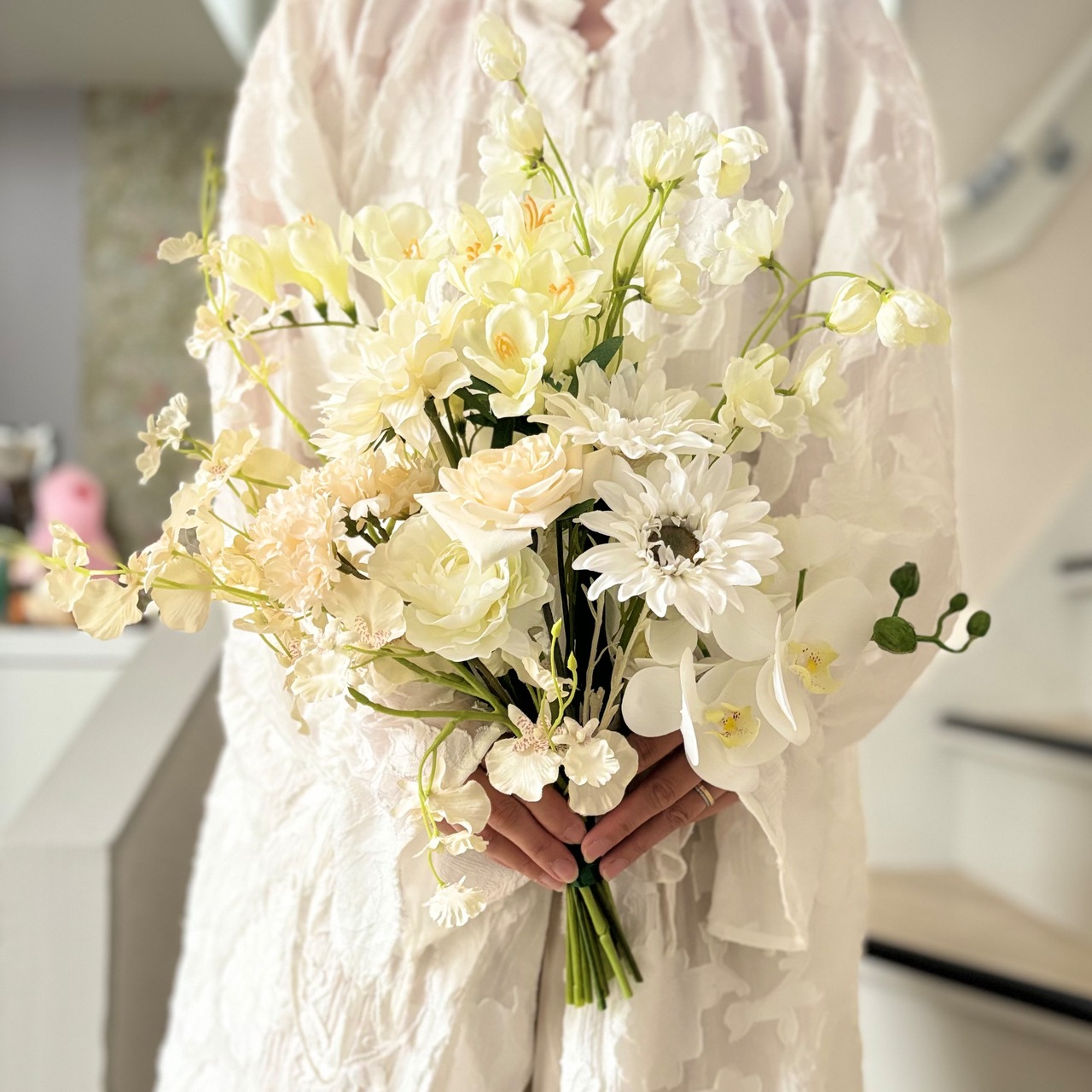 アイボリー&ホワイトのブーケ ウェディングブーケ 造花 ブーケ