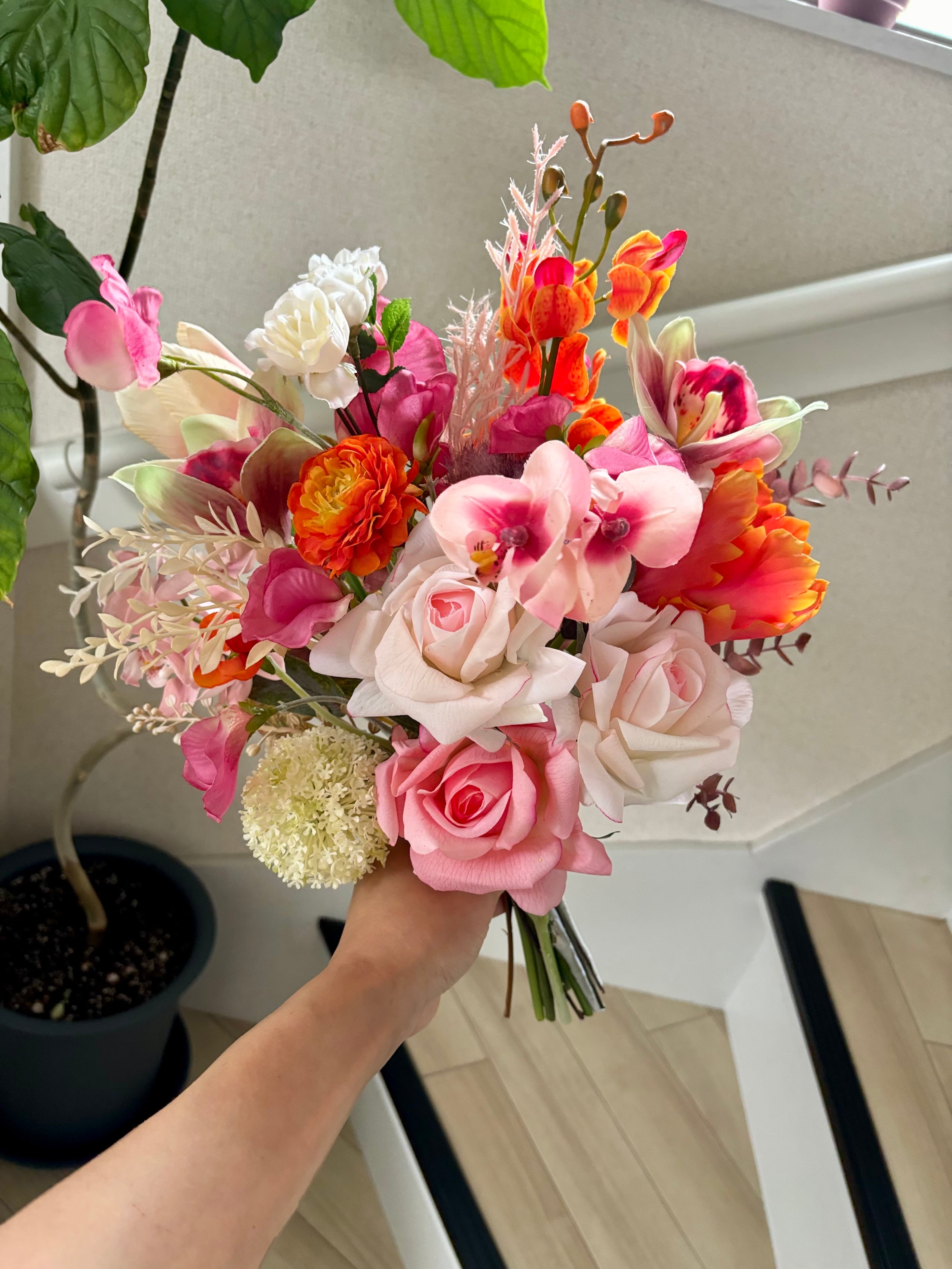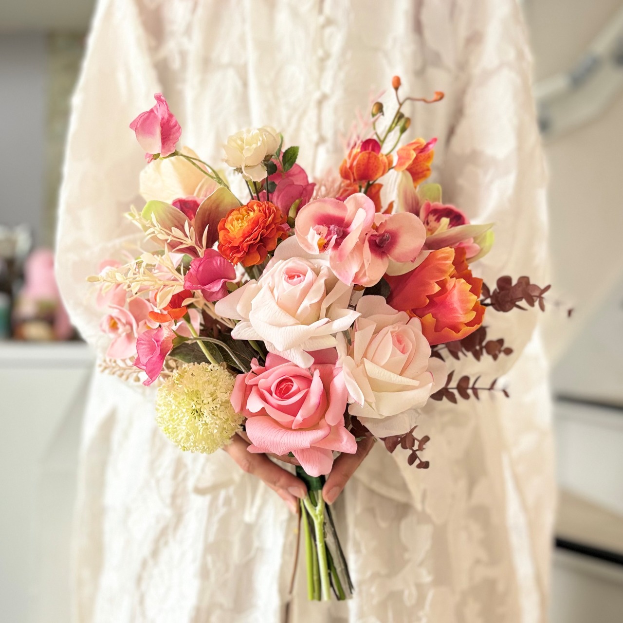 オレンジ&ピンクの暖色系ブーケ ウェディングブーケ ブーケ 造花ブーケ クラッチブーケ