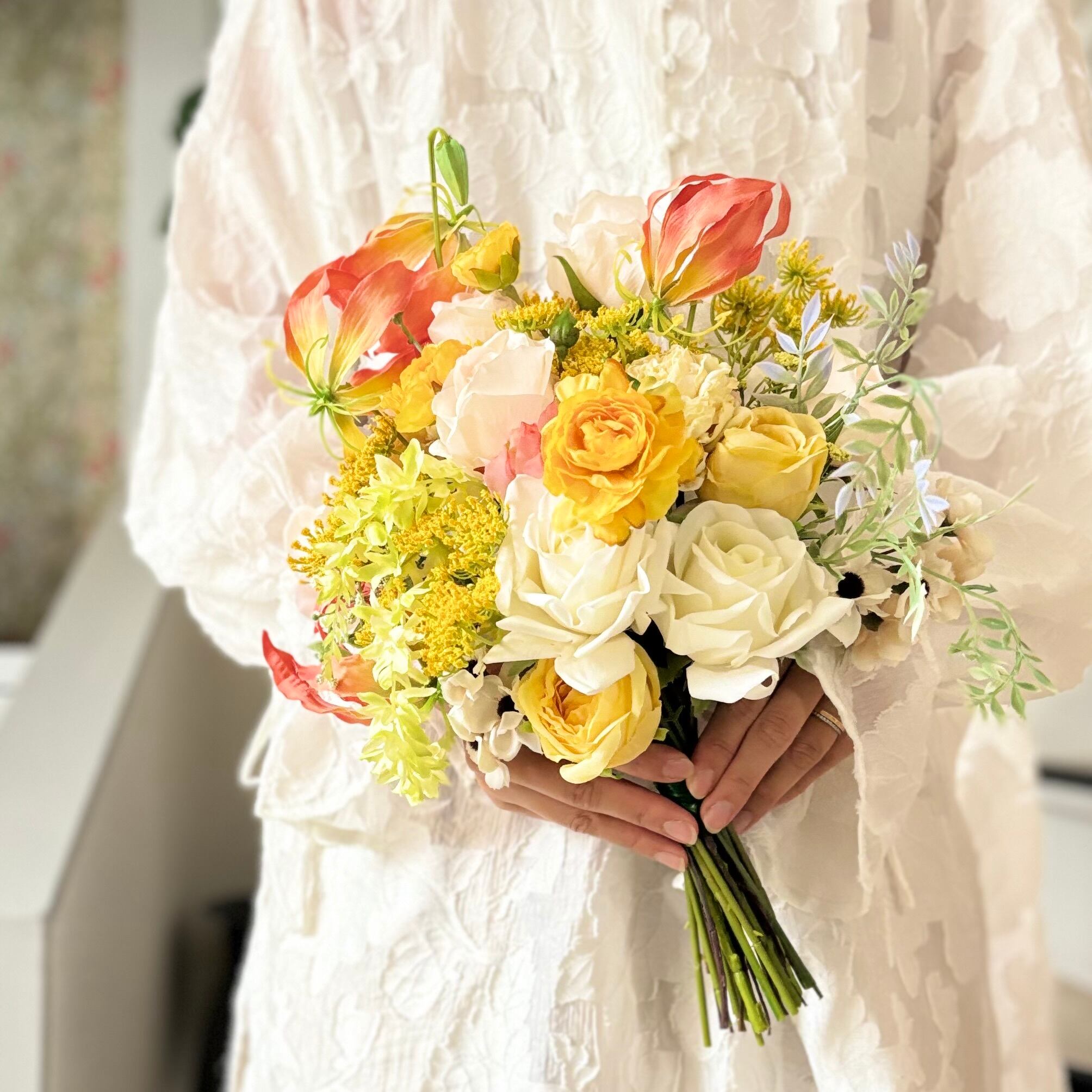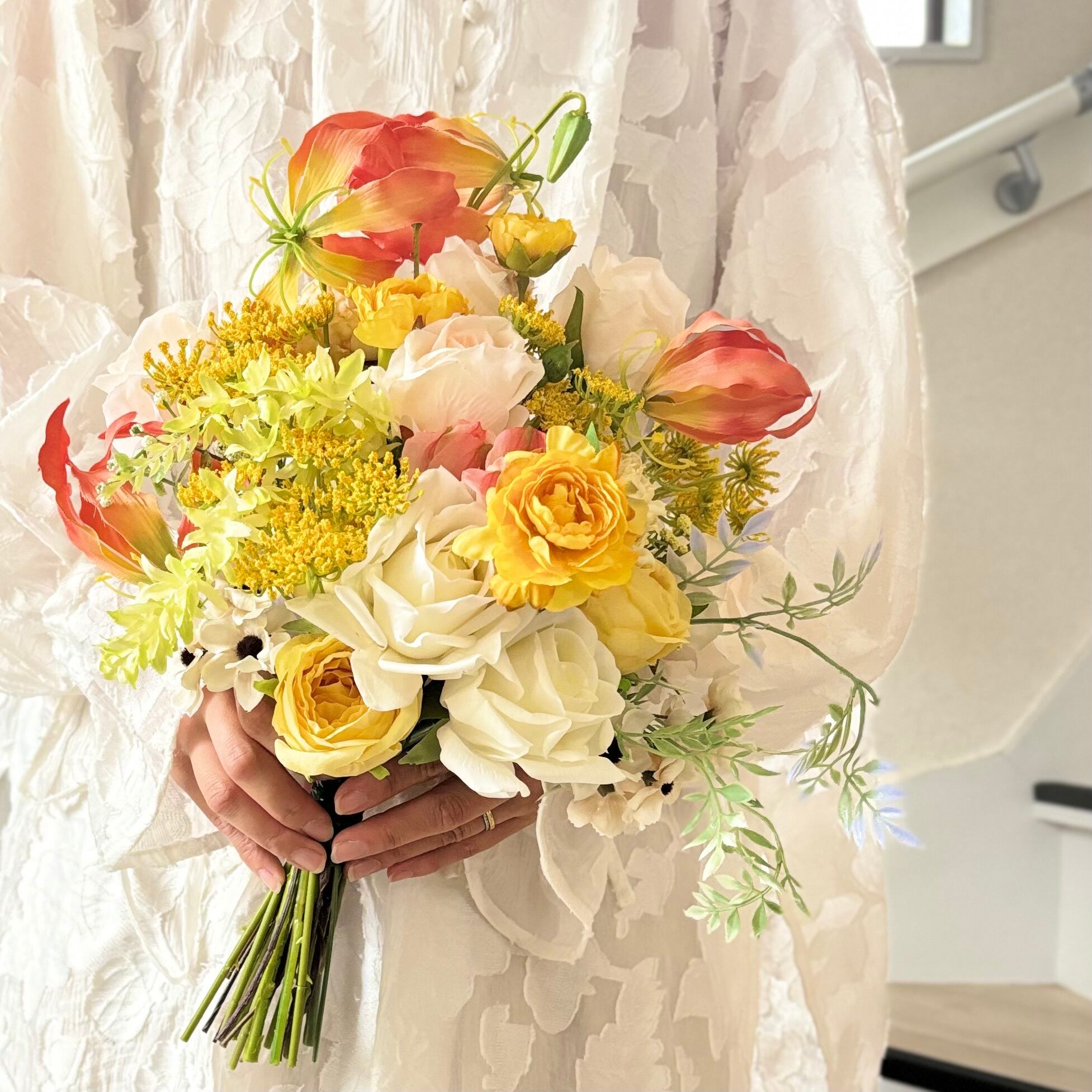 オレンジ&イエローのブーケ ウェディングブーケ ブーケ 造花ブーケ クラッチブーケ