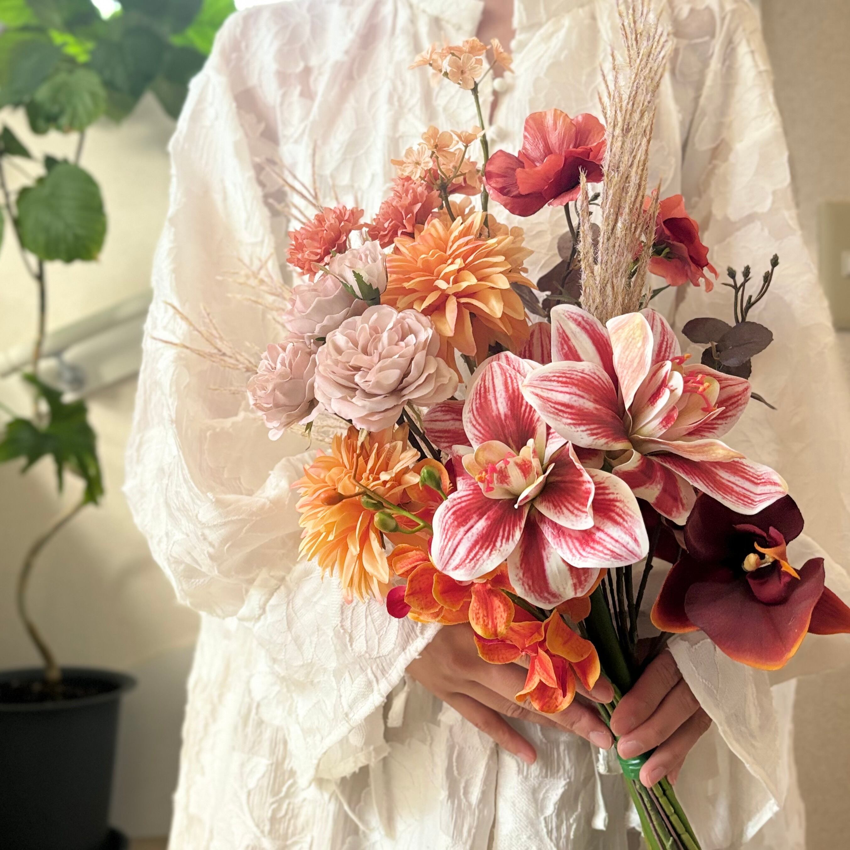 アマリリスの暖色系ブーケ♪ ウェディングブーケ ブーケ 造花ブーケ クラッチブーケ
