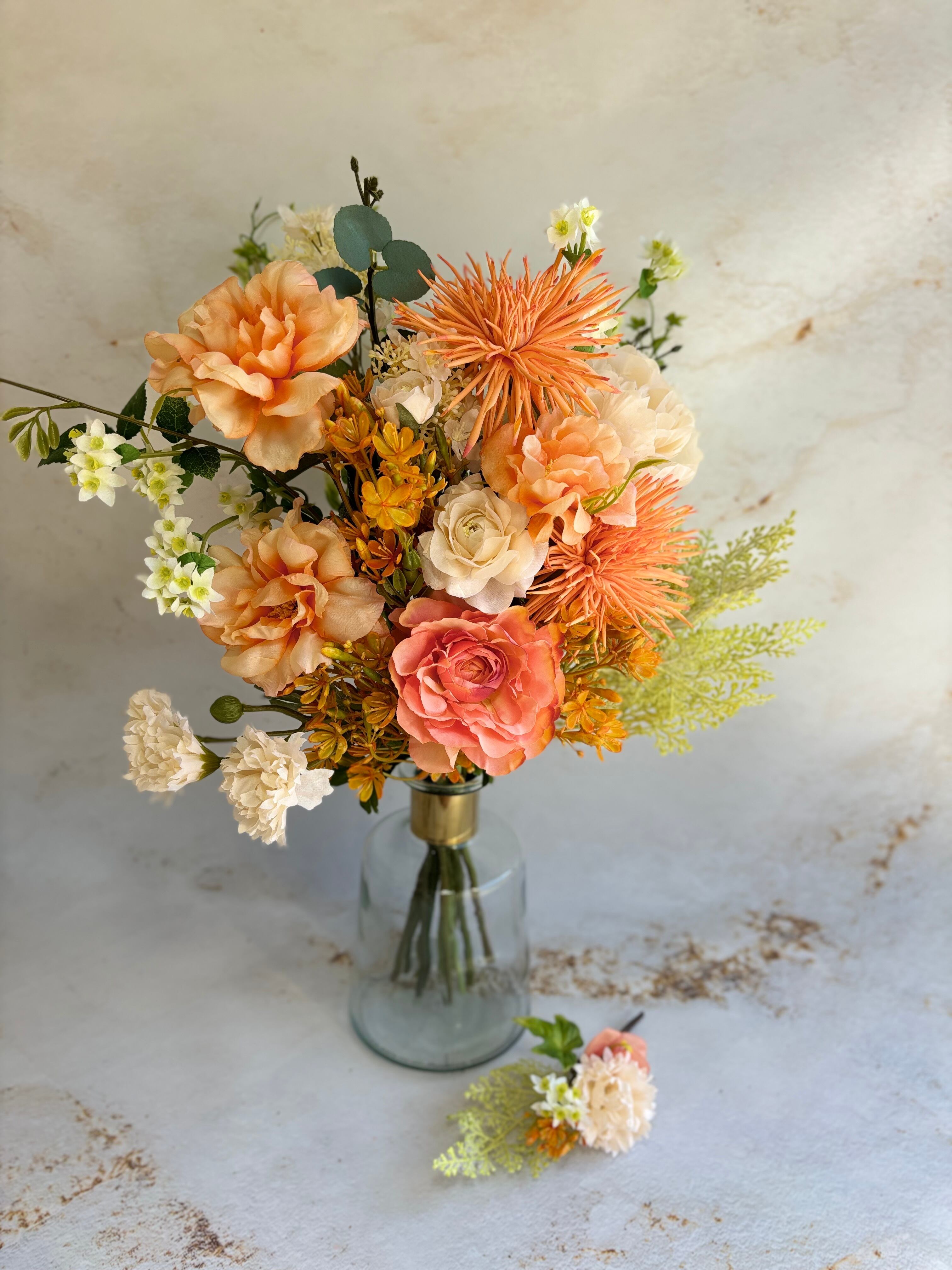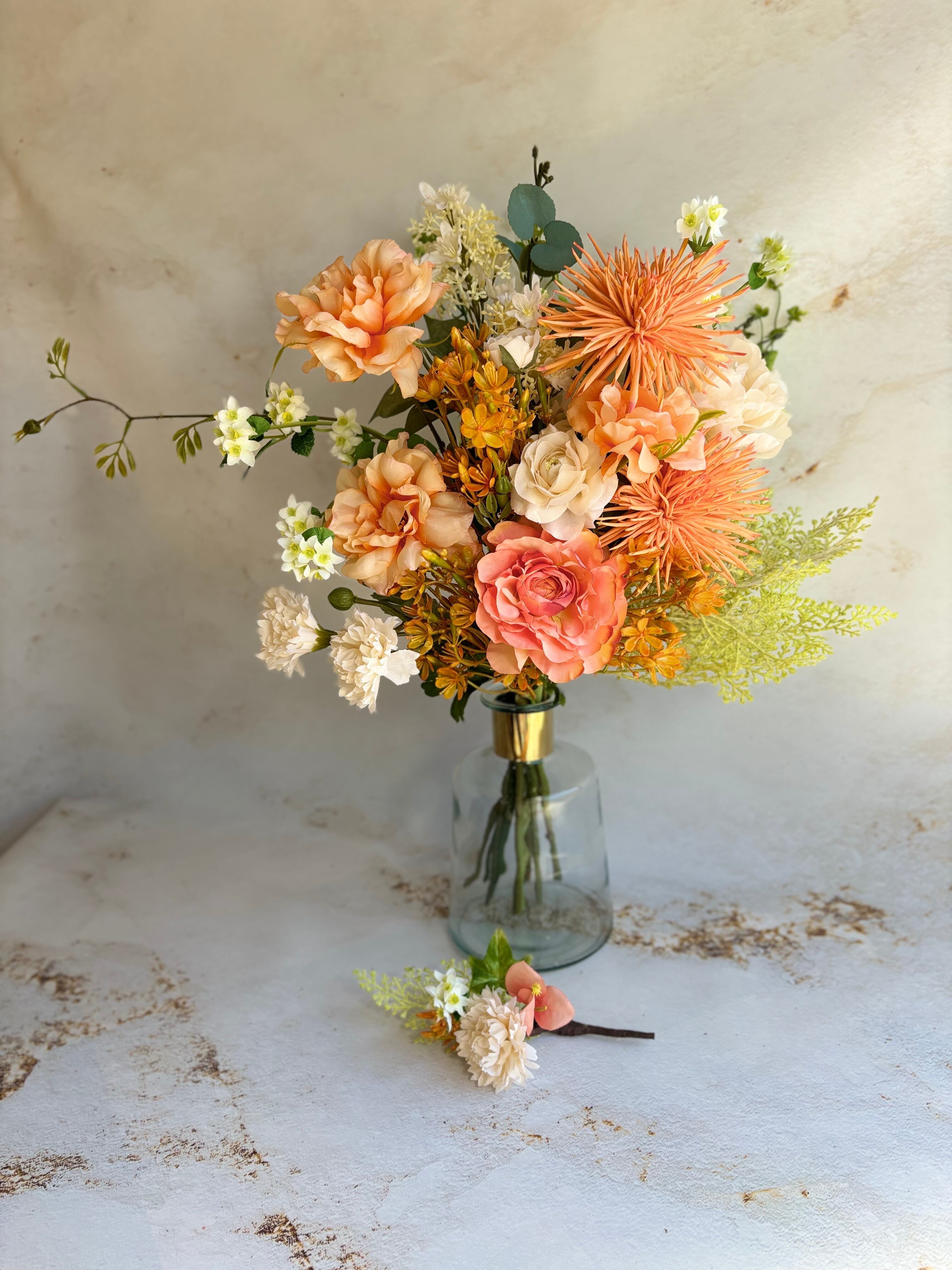 オレンジの華やかウェディングブーケ ブーケ 造花ブーケ クラッチブーケ