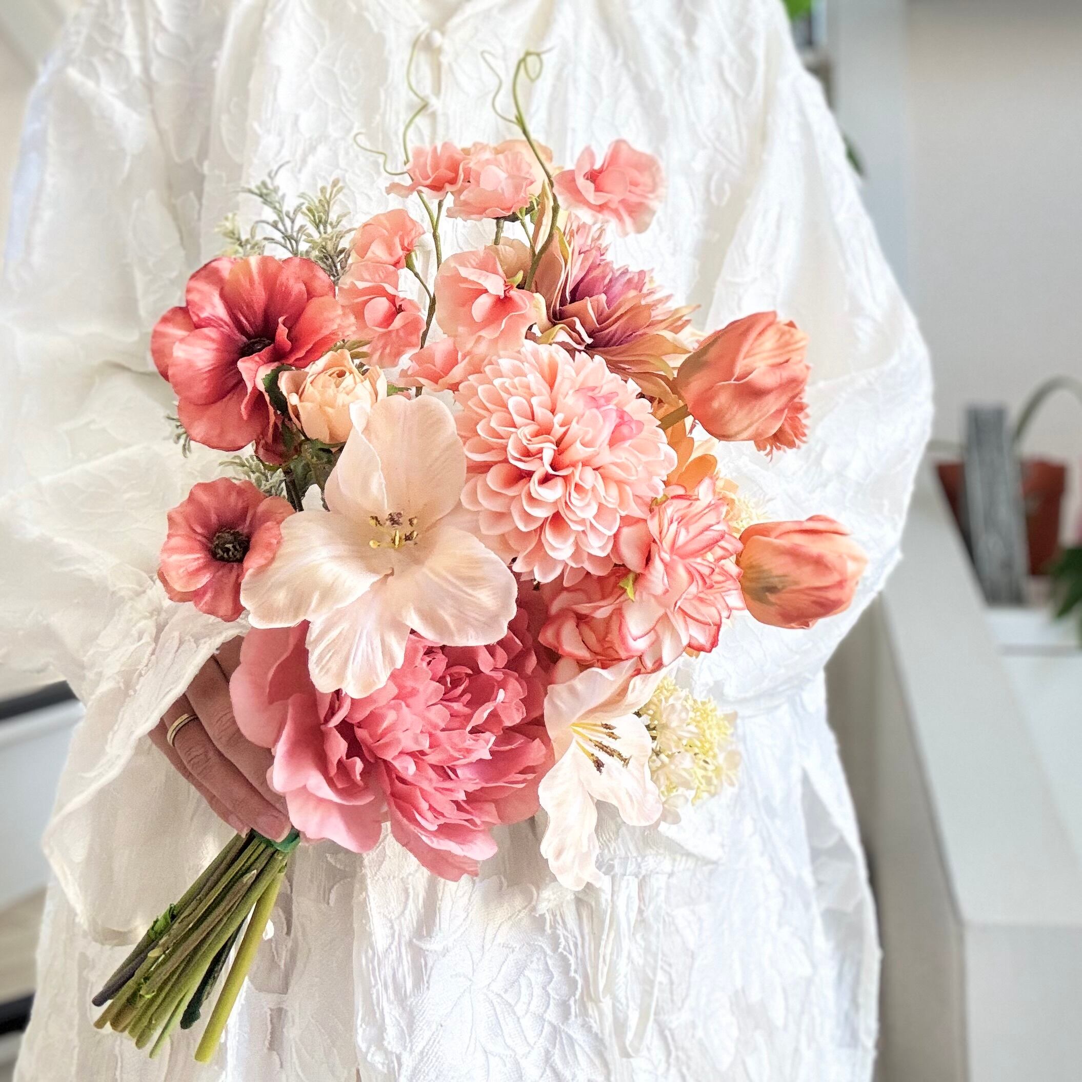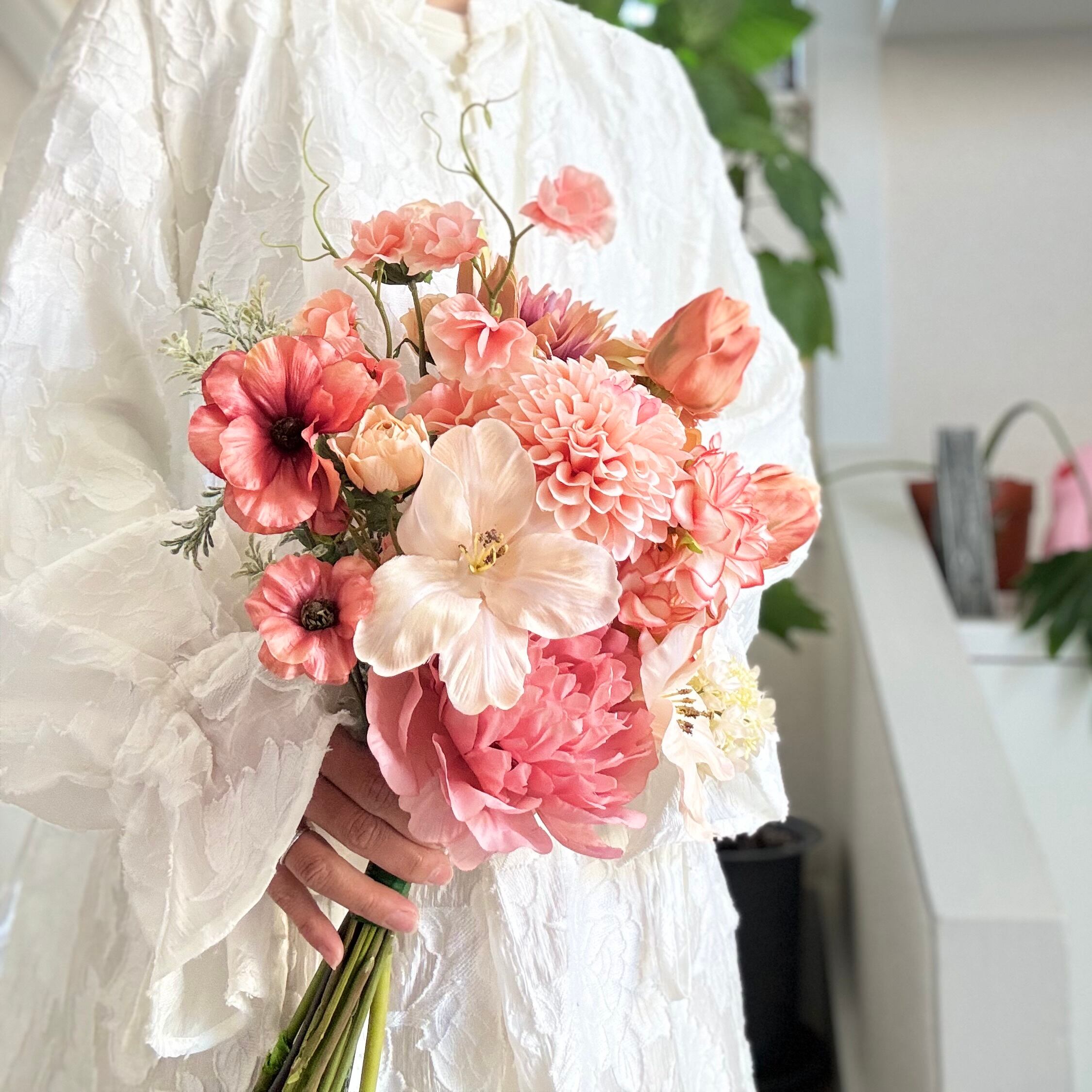 ウェディングドレスにも合わせやすいコーラルカラー♪